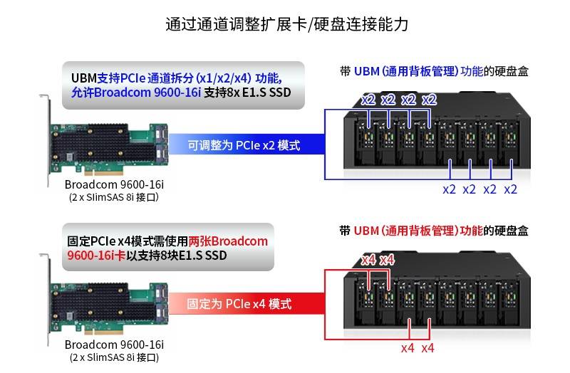 支持x4/x2/x1多通道模式灵活配置,大幅降低单盘使用成本