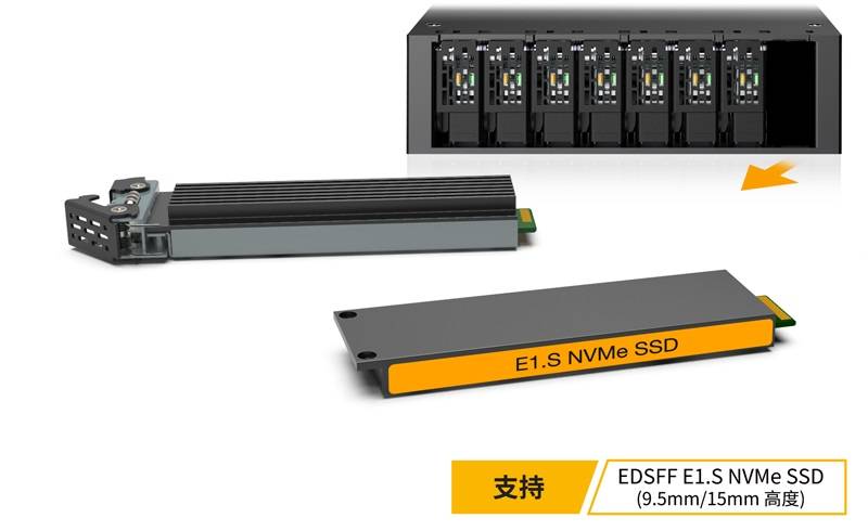在单个光驱位内容纳8块E1.S PCIe Gen5 SSD