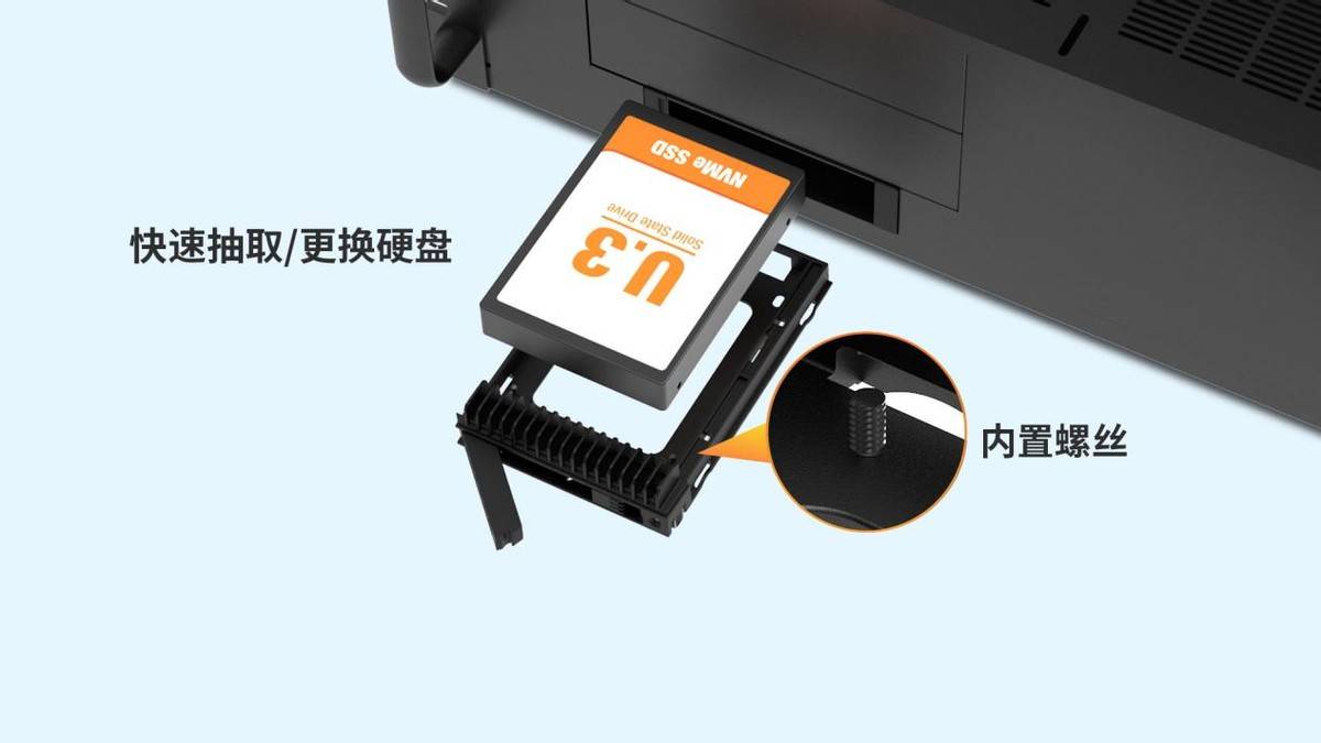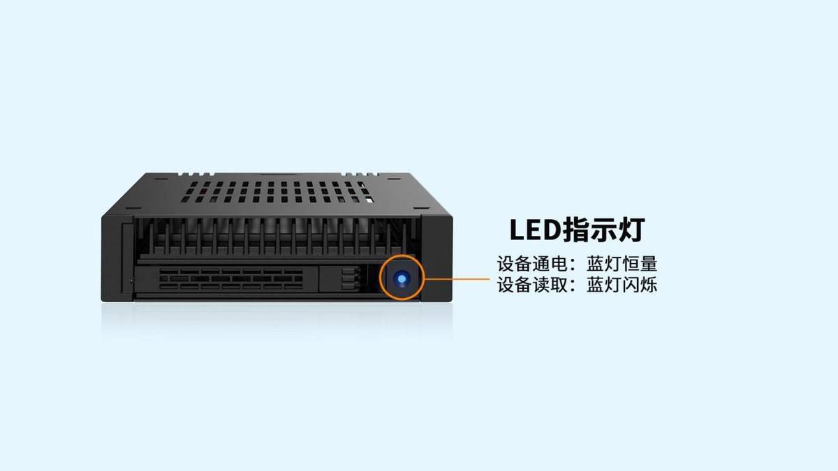 在实际运维中,前面板LED可实时显示硬盘的电源与工作状态,用户无需拆解硬盘盒即可快速监控存储模块运行情况。内部盘位支持5mm至15mm厚度的U.2/U.3硬盘,打破了传统托盘对硬盘尺寸的限制,显著拓宽了兼容范围,非常适用于IT运维、数据恢复及生产型工作流程等对存储要求较高的行业。