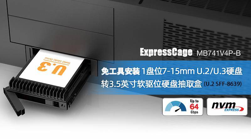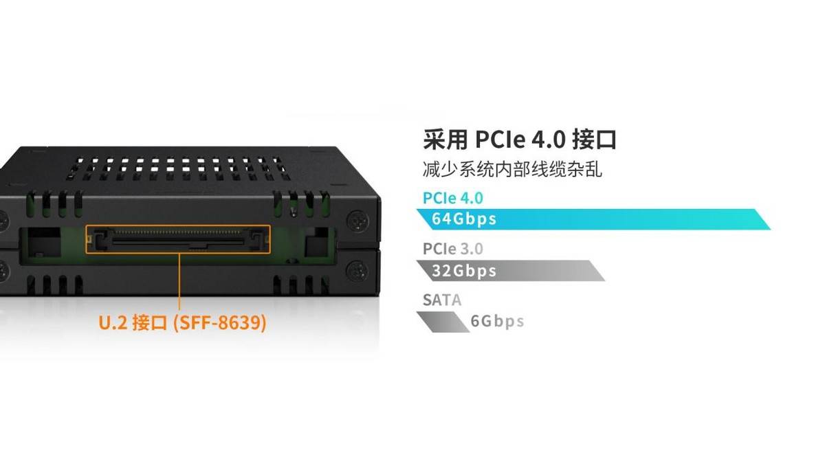 在专业级存储部署中,散热与兼容性是决定U.2硬盘能否持续稳定运行的核心要素。U.2 NVMe硬盘若散热不良,易导致性能衰减,而兼容性问题更会令系统集成步履维艰。针对两大难题,艾西达克推出了单盘位U.2/U.3硬盘抽取盒MB741V4P-B。该产品仅占用一个3.5英寸光驱位,即可实现对U.2/U.3硬盘的稳定识别与高速读取。