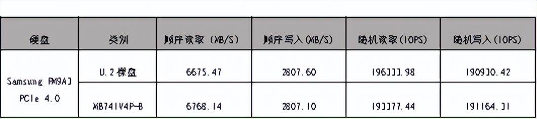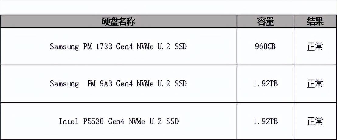 同时,通过CrystalDiskInfov9.3.2 &CrystalDiskMarkv8.0.4对以下U.2硬盘进行测速。结果表明,通过MB741V4P-B可以正确识别以下硬盘容量,保持硬盘的正常运行速度。