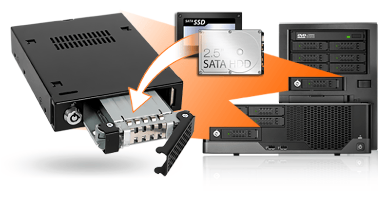 ICY DOCK正好有这么一款能够满足以上所有条件的硬盘盒,成功地在电脑机箱紧凑的3.5英寸软驱位内,融入了一个便捷的可抽取式2.5英寸SATA/SAS硬盘插槽,其硬盘抽取盒以易于操作、维护简便、组合灵活及卓越可靠性等显著优势。