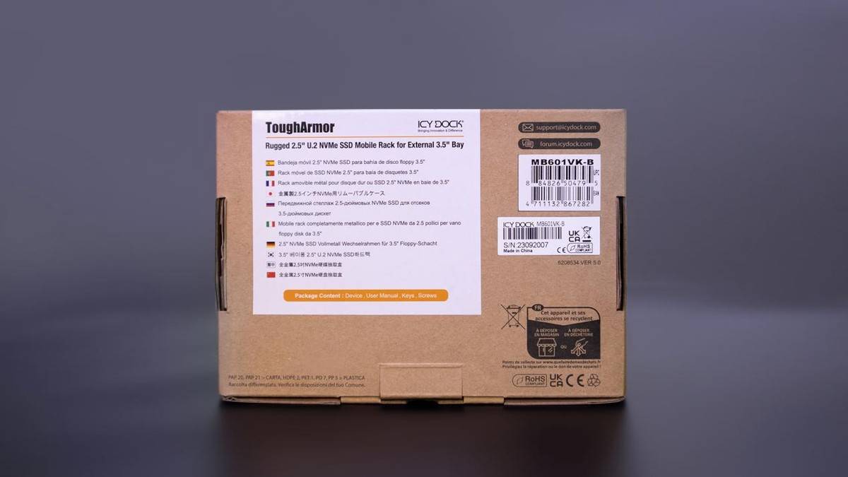 MB601VK-B硬盘抽取盒包装盒采用简约的牛皮纸盒,正面印着产品的外观以及标注了产品的规格信息,为消费者提供了详尽且全面的产品信息,使其在选择时更加明确与安心。