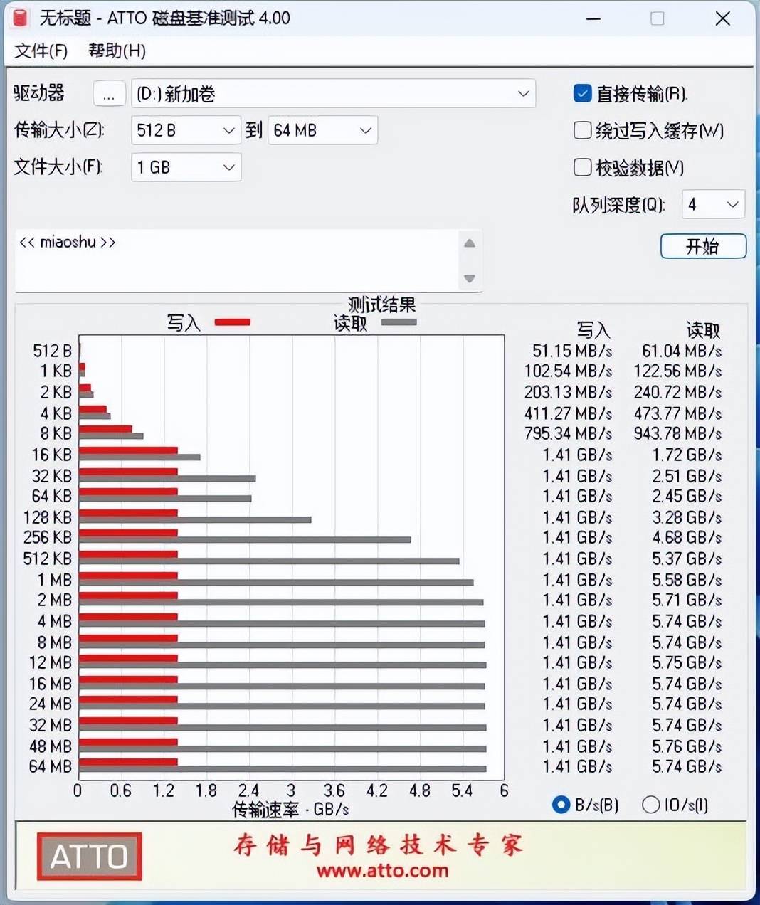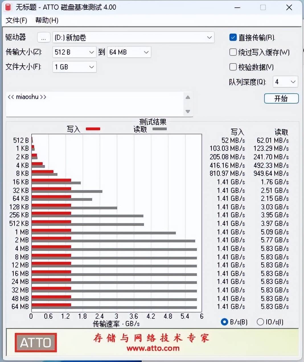 3.2 ATTO软件测速-通过MB601VK-B连接测试:
